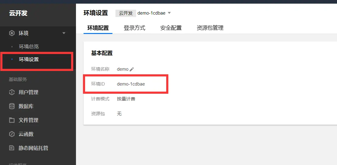 这里的文件夹是将此文件夹下所有的文件都部署到云开发的根目录中,云环境ID可在环境ID下查看