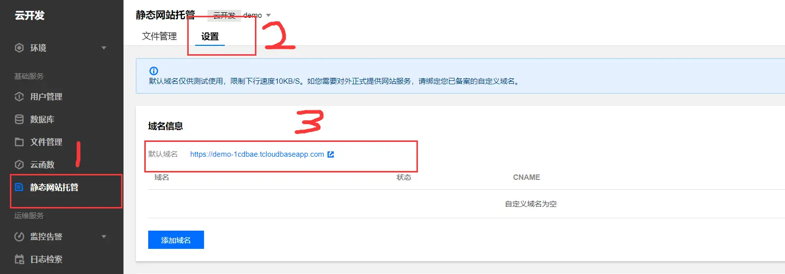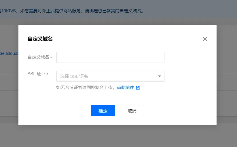 但默认域名存在限制下行速度10KB/S,如果正式使用的话需要添加一个已经备案的域名