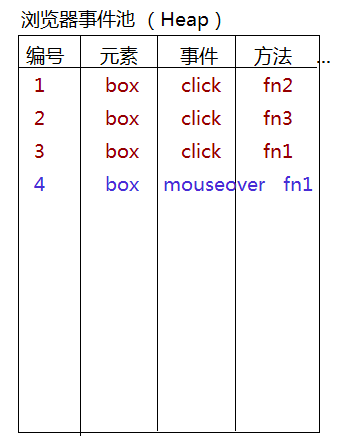 - 基于原型链查找机制,找到EventTarget.prototype上的方法并且执行,此方法执行,会把给当前元素某个事件行为绑定的所有方法,存放到浏览器默认的事件池中(绑定几个方法,会向事件池存储几个);
