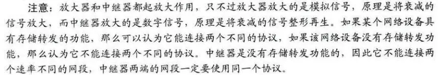 中继器是局域网环境下用来扩大网络规模的最简单、最廉价的互联设备。使用中继器连接的几个网段仍然是一个局域网。一般情况下,中继器的两端连接的是相同的媒体,但有的中继器也可以完成不同媒体的转接工作。但由于中继器工作在物理层,因此它不能连接两个具有不同速率的局域网。中继器两端的网络部分是网段,而不是子网。中继器若出现故障,对相邻两个网段的工作都将产生影响。