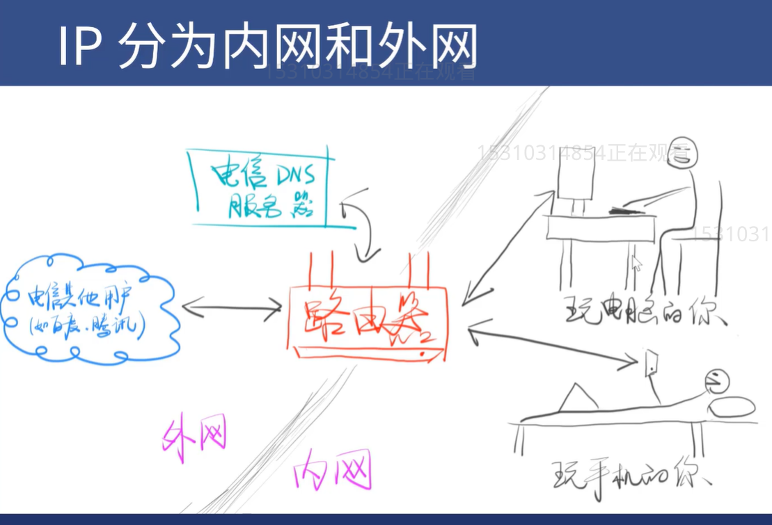 - 现在路由器有两个ip,一个外网IP,一个内网IP,