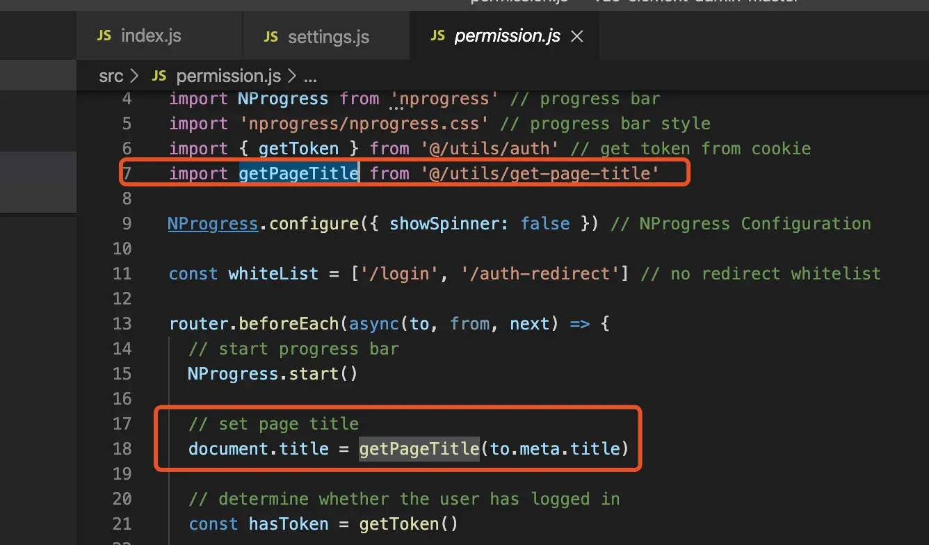 2)在找一下谁引用了get-page-title.js,找到permission.js