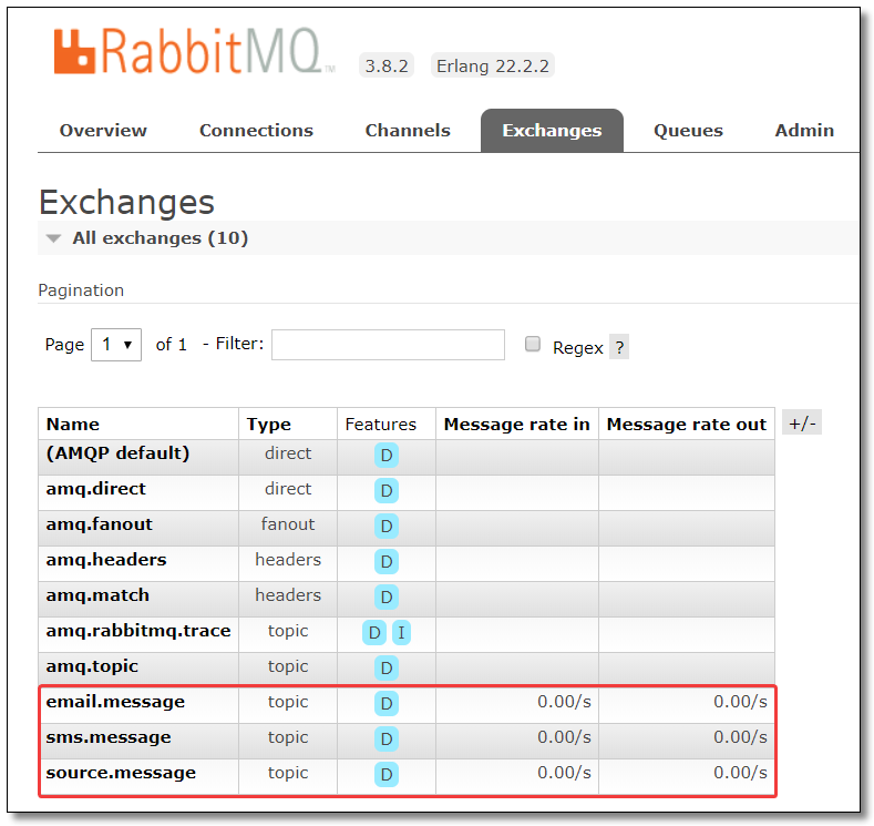 source.message交换机接收原始消息,经过处理分别发送至sms.message和email.message交换机; - 消息驱动微服务应用通过