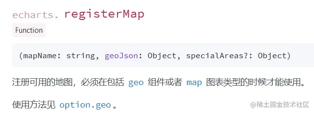 - 对于echarts地图的js文件echarts.registerMap注册方法说明如下: