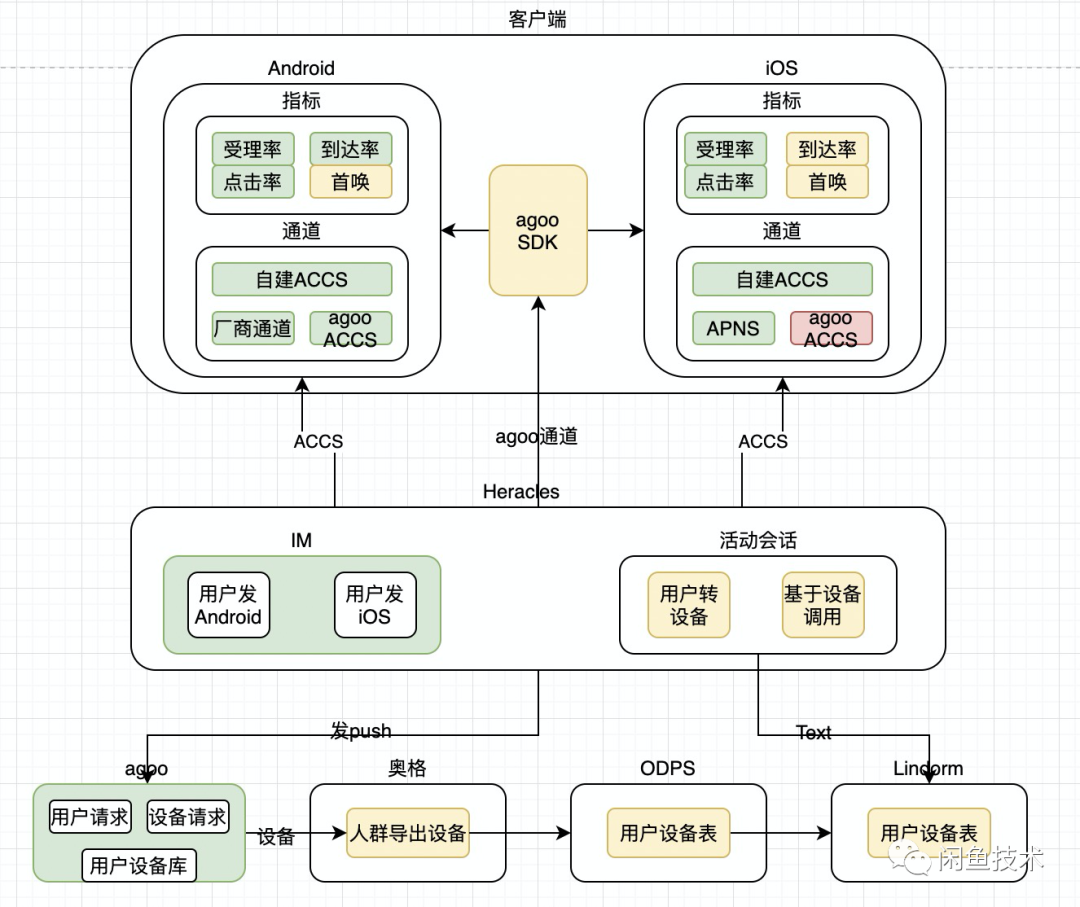当用户打开闲鱼App后,客户端会调用Agoo SDK将登录用户与当前设备信息进行绑定,方便后续基于用户做消息推送。