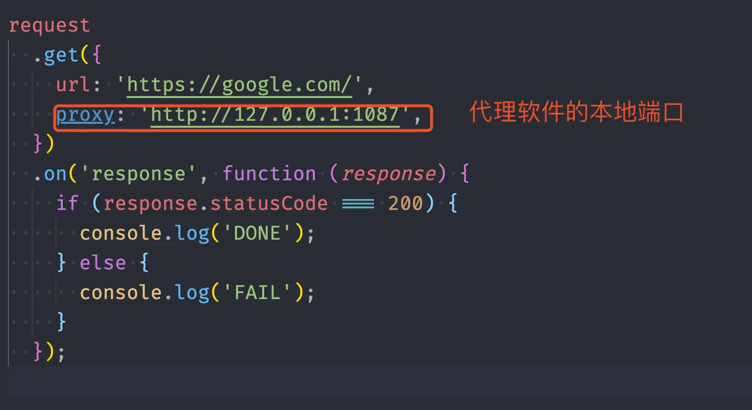 这里用 request.js 来举例,其他的请求库,都会有 proxy 的属性。