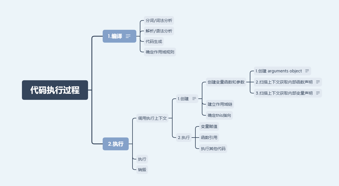 - 编译:由JavaScript编译器对代码进行编译,将代码翻译成可执行代码