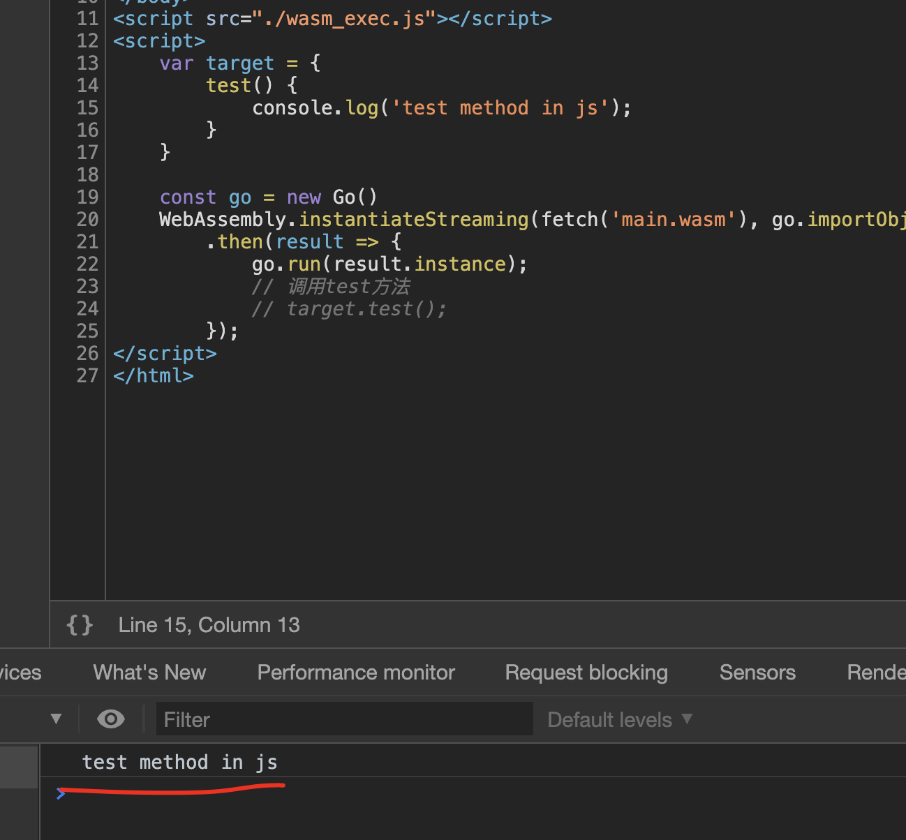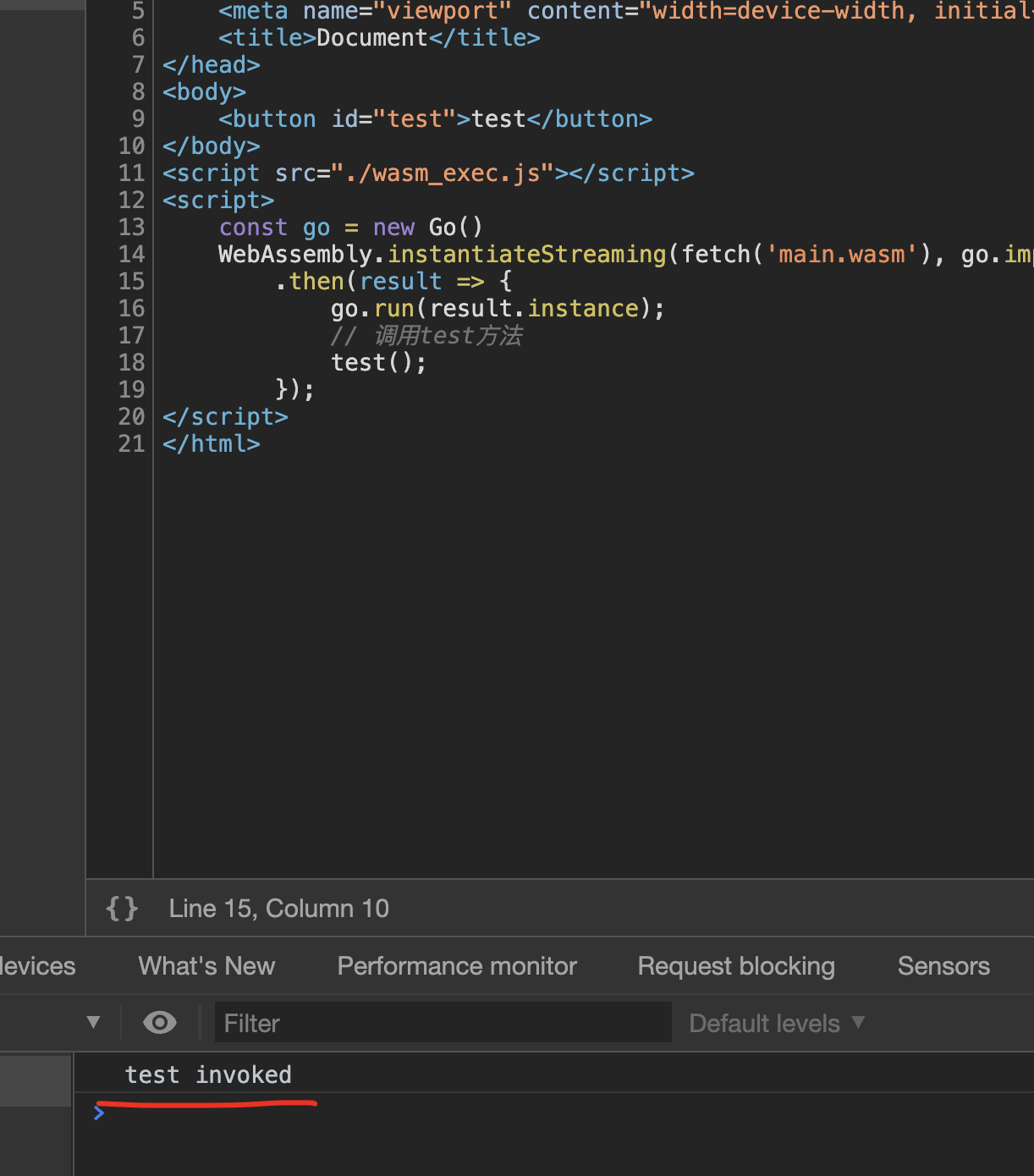 要想在wasm中访问js中的方法,其实很简单了,看上面的代码应该就能猜到了,Go里面既然可以往js的对象上挂载函数,那肯定也能直接访问js对象上的函数。