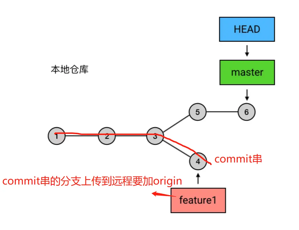 出现分支---< 如果想要把本地创建的分支的commit 串上传上去,需 git push origin(远程仓库的别名) 分支名