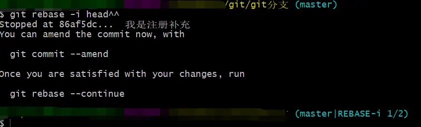 git rebase -i(--interactive) head^(界面是commit正序排,新的commit在下)