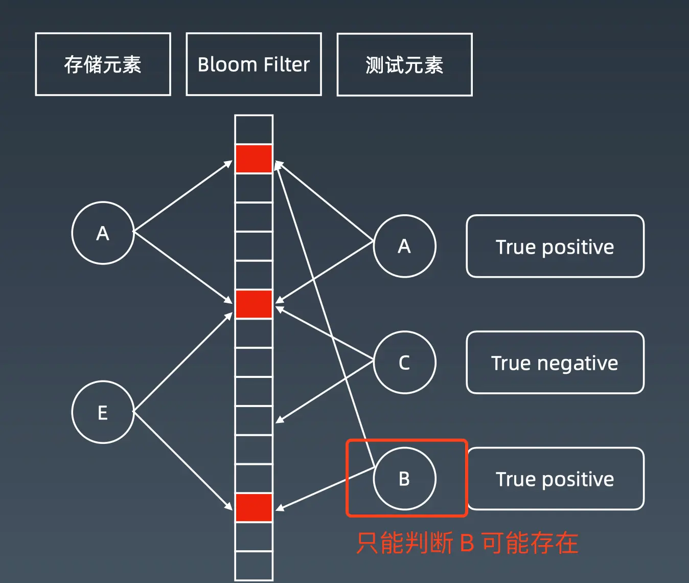 - 只能判断肯定不存在或可能存在