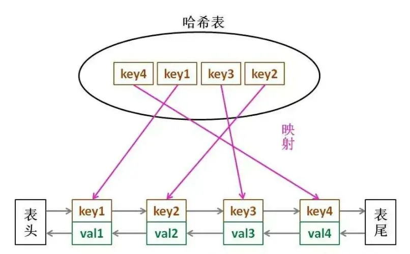 增删 O(1),我们第一个想到要用 LinkedList,访问 O(1),我们第一个想到要用 HashTable,那么怎么把两者结合起来呢?让我们从思考这两个问题开始: