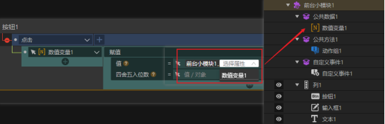 最后说明一下小模块中公共数据的更新当前数据至小模块动作,我们在小模块内部更新公共数据的值时,如果不添加这条动作,那么小模块内的公共数据已经被修改后显示的会是更新后的数据,但是从外部获取小模块属性时获取到的会依旧是更新之前的值,所以更新以及赋值后一定要记得加上这条动作。