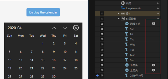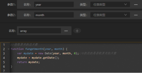 首先函数组件中自定义了一个函数fungetmonth,接收参数也为year和month,这部分的功能是获取当前月份总天数。例如我们传入2020年4月,然后通过getDate获取2020年4月0号的日期,这时返回的是2020年3月的最后一天的日期,就能知道3月一共有多少天。不过要注意JS语言中month的值是从0到11的,系统组件获取的是4月,我们将4传入函数函数读取到的是5月,所以返回的正好是4月的最后一天。