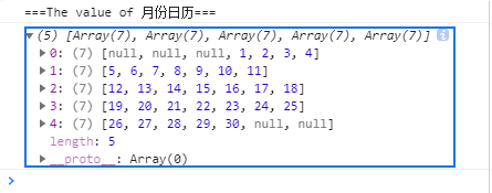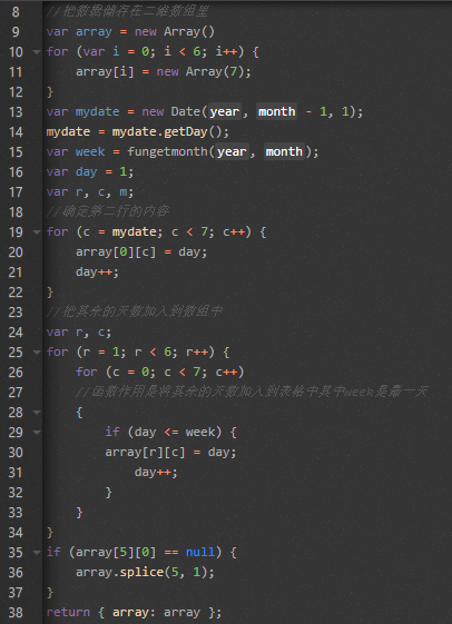 函数的作用就是生成当前月的日历表,传入参数就是公共数据中的year和month,,返回结果为一个二维数组。