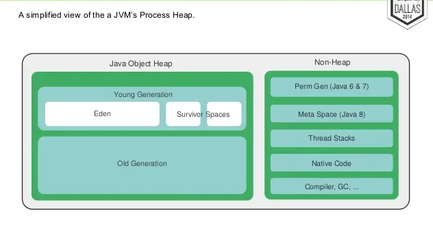 Max memory = [-Xmx] + [-XX:MaxPermSize] + number_of_threads * [-Xss]- heap结构