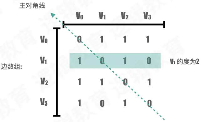 假设图G有n个顶点,则邻接矩阵是一个n*n的方阵,定义为: