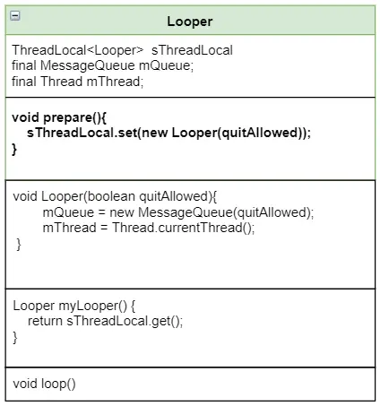 sThreadLocal.set(new Looper(quitAllowed));- 同时在创建Looper的时候,创建了全局唯一的线程消息队列