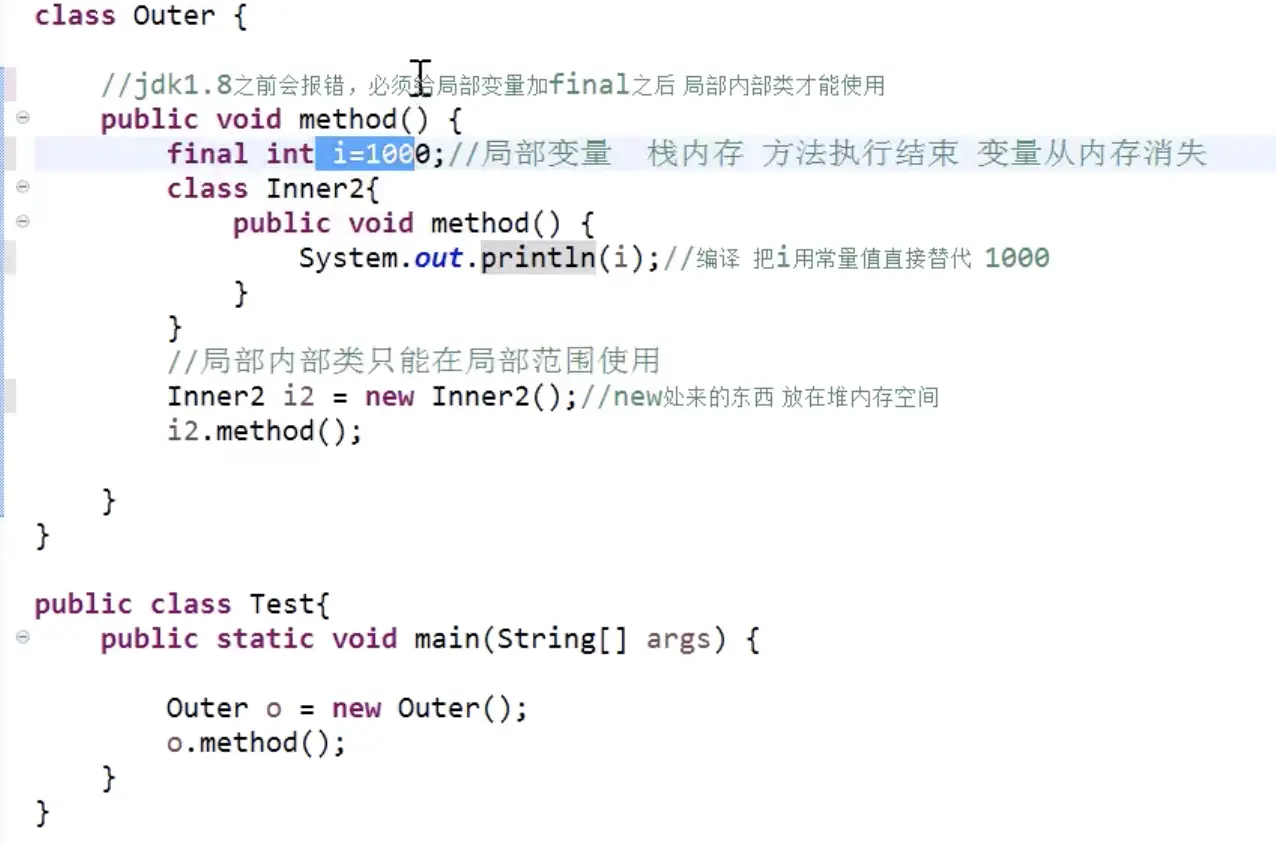 4.局部内部类访问局部变量,局部变量必须加final,使其变成常量