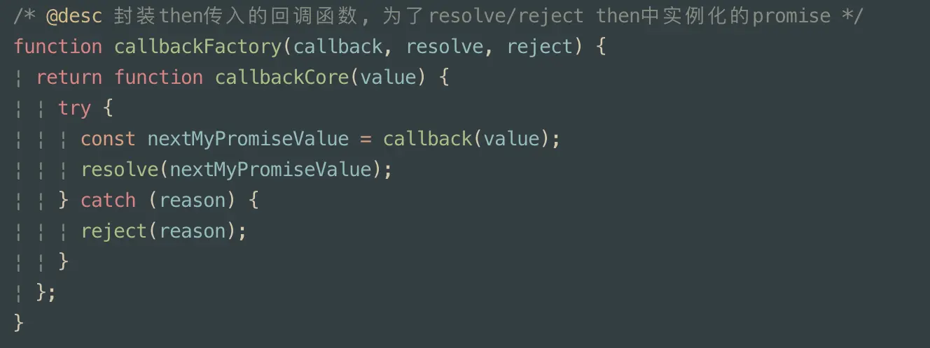 then方法返回一些新的Promise(promiseInstanceThen),并且将通过then方法注册的回调作为其值/拒因,