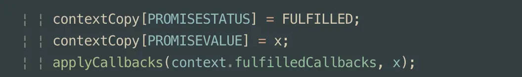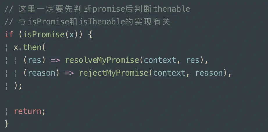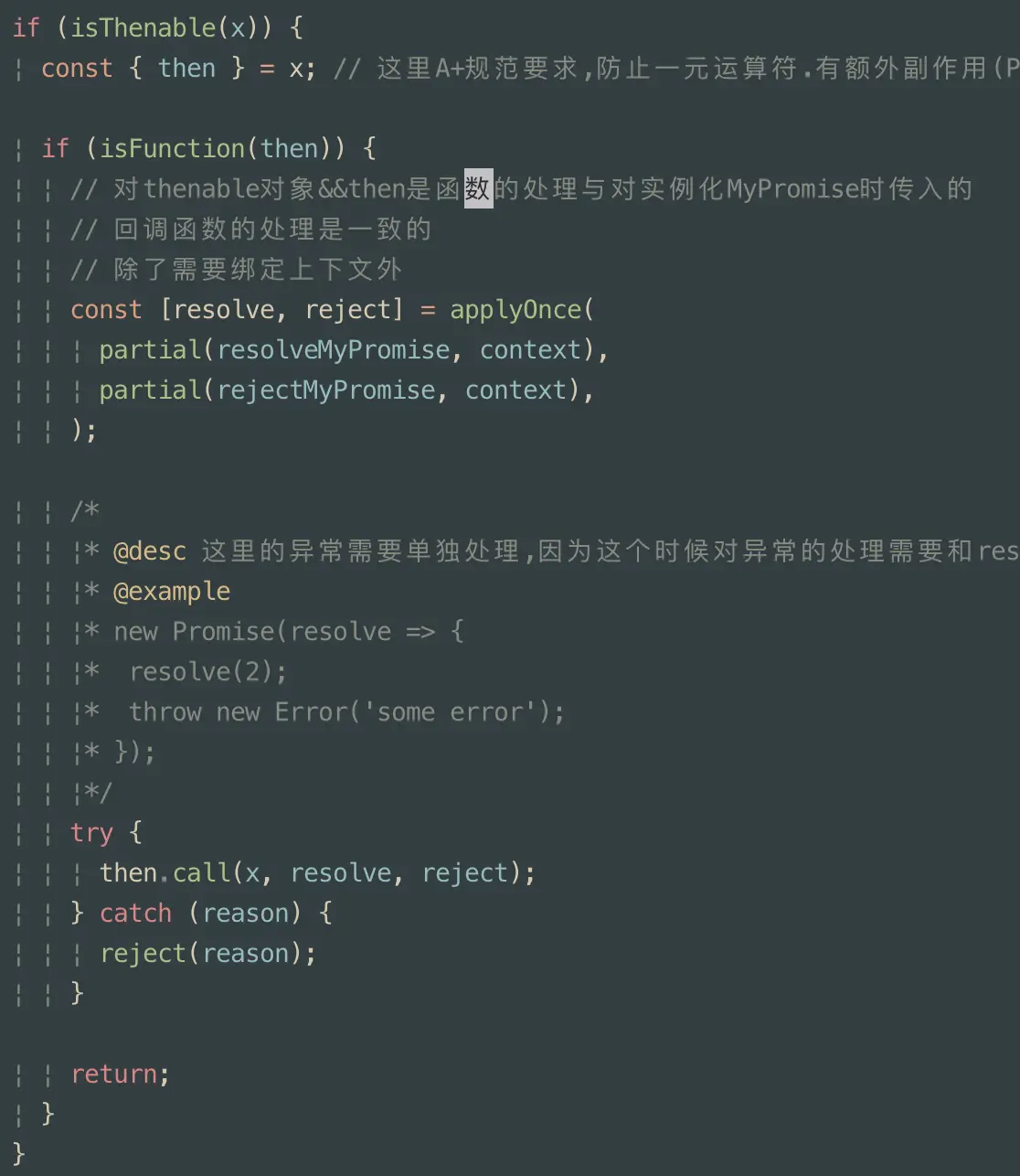 值得注意的是对thenable对象的then方法的处理过程和传入Promise的函数的处理是一致的除了对then方法的处理需要绑定x作为其上下文