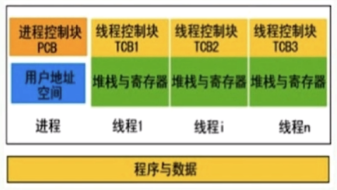 线程只由堆栈寄存器,程序计数器和TCB组成