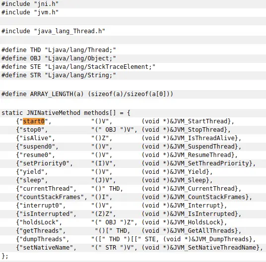 start0()方法引自于jvm.h中的JVM_StartThread()方法