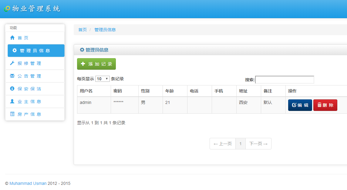 业主账号:goodym 密码:123456共包含管理员信息,报修管理,公告管理,保安保洁,业主信息,房主信息