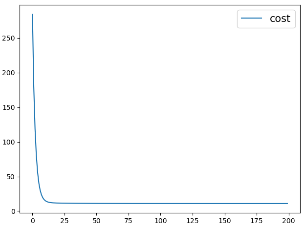开始训练,迭代次数(也就是往谷底跳的次数)默认为200,然后返回历史损失值。