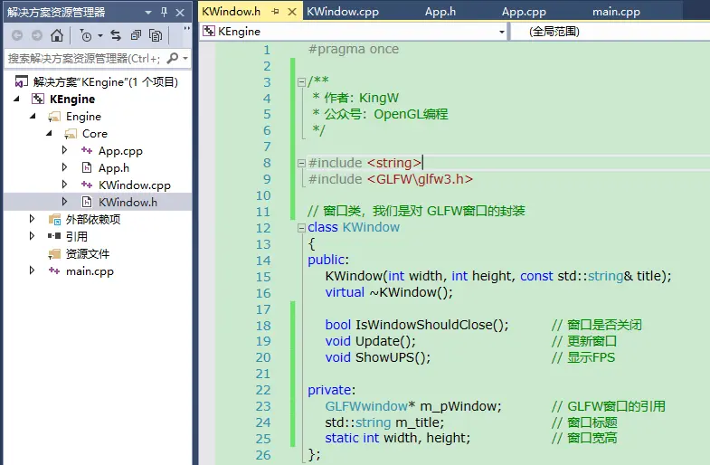 我们的主窗口是对GLFW窗口的封装,现在很简单,以后会根据需求扩充这个窗口类。