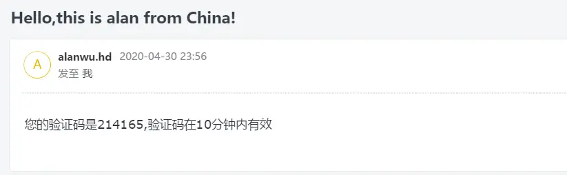 subject: "Hello,this is alan from China!", // 主题