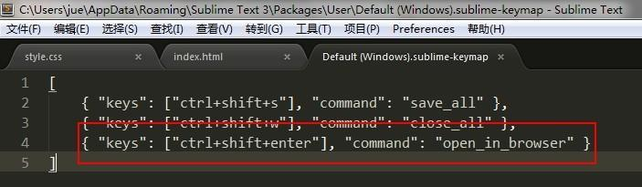 下面进行一下上述方法的说明:设置快捷键让SublimeText在编文件快速在浏览器打开快捷键为"ctrl+shift+enter",这儿说的浏览器是指系统默认的浏览器,暂时小觉不知道怎么指定通过那款浏览器进行打开,如果显示器前的你知道答案的话,请不介分享哦!