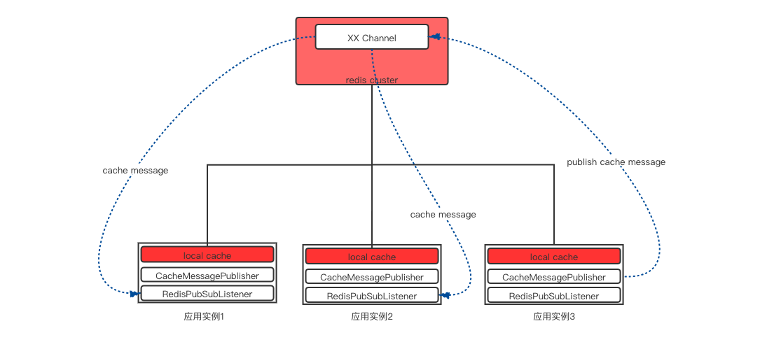 - A接收到查询请求,发现local cache中没有值,而remote cache中有值。将remote cache中的值加载到local cache。 此时不触发缓存更新事件。 ..... 通过上面推演的场景可以发现章节开头提到的问题:应用实例会消费自己广播的消息,导致部分逻辑重复执行。 初步想法:通过应用实例唯一标识来过滤自己发送的广播消息。TODO