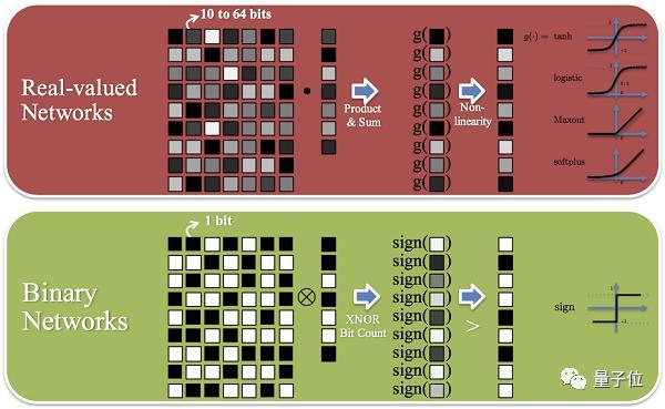 所以用两种颜色的色块表示二值神经网络(BNN)最合适了。