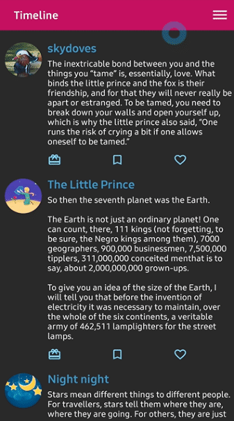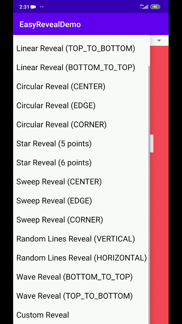 从名字就知道,这是一个提供reveal动画效果的库,它的厉害之处在于可以提供不同尺寸、不同形状的reveal动画,并且还可以在定义它在屏幕任意位置开始和结束动画。
