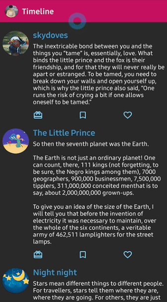 这是一个很棒的ViewPager库,它在浏览ViewPager的不同页面时,显示波浪的滑动动画,效果非常炫酷。该库的USP是触摸交互的。这意味着在视图中显示类似液体的显示过渡时,应考虑触摸事件。