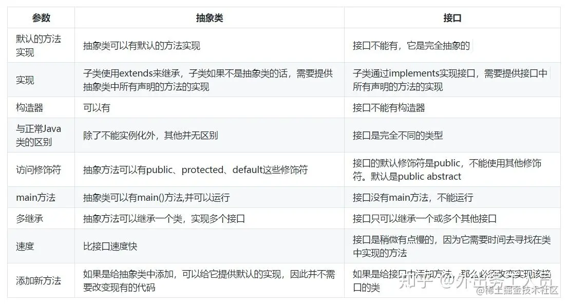 在Java中,抽象类和接口的区别,有一张图解释得特别好: