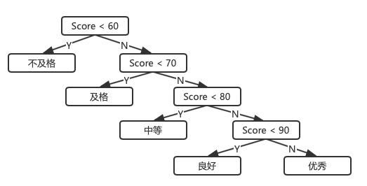 这样看上去是没什么问题, 但是好的试卷应该是让学生的成绩大部分分布在中等良好的点过范围, 优秀和不及格应该是少数的. 而这个程序中, 分布最多的位置判断至中等良好,都需要经过三四次判断处理才能得到. 这样的话效率就会变低很多.