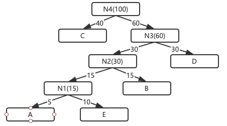 合起来就是100%. 那么我们就可以用哈夫曼树来规划它们: