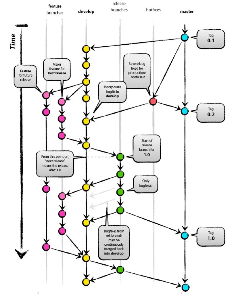 releasebranch is created fromdevelop Featurebranches are created fromdevelop- When a