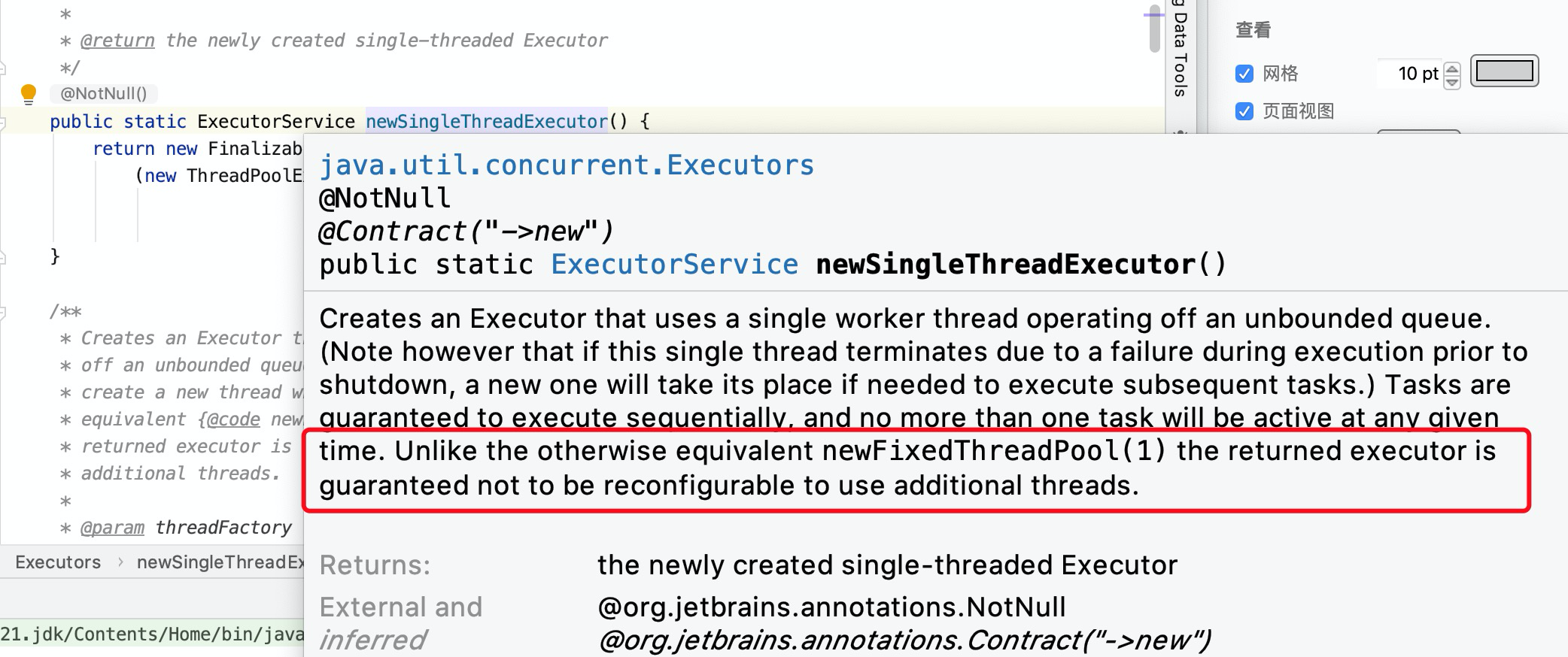 越看越多,我发现newSingleThreadExecutor注释中有这么一句话