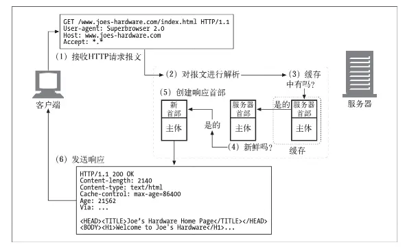 缓存对报文进行解析,提取 URL 和各种首部; - 查询