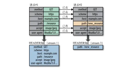 HTTP/2 连接的两端都知道已经发送了哪些首部,这些首部是什么,从而可以针对之前的数据只编码发送差异数据。