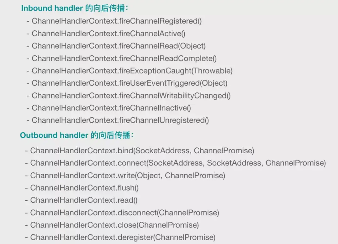 我们用下面这张图结束本节。下图展示了传播的方法,但我其实是更想让大家看一下,哪些事件是 Inbound 类型的,哪些是 Outbound 类型的: