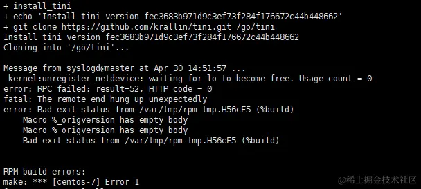 确实是网络问题,重试两次下载tini完成,继续下载依赖。 后续又因网络问题重试了几次,编译完成: