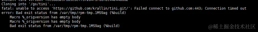 fatal: unable to access 'https://github.com/krallin/tini.git/': Failed connect to github.com:443; Connection timed out