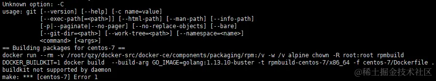 5. 果然,不会那么顺利,立即编译失败:buildkit not supported by daemon!