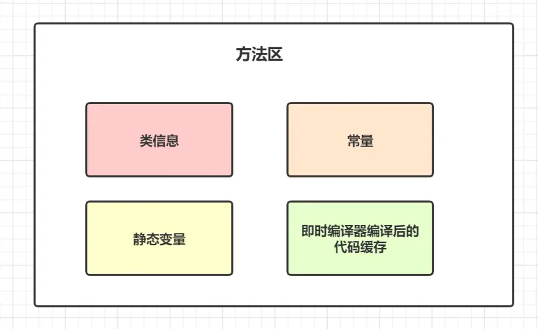 方法区是各个线程共享的内存区域,它用于存储已被虚拟机加载的类型信息、常量、静态变量、即时编译器编译后的代码缓存等数据。