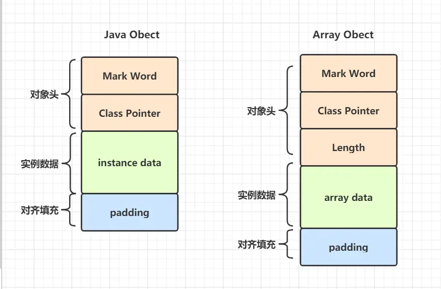 一个Java对象在堆内存中包括对象头、实例数据和补齐填充3个部分: