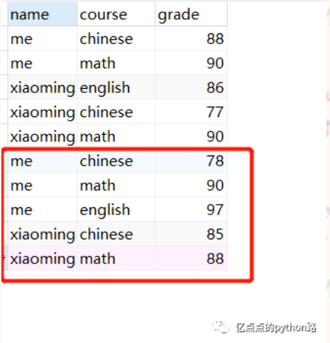 现在要求每个人的总分数,数据源如下